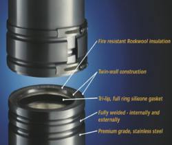 Working under suction, atmospheric flues could tolerate simple joints between components, but all this has changed with the growth in high-efficiency boilers. Most high-efficiency and condensing boilers use a fan as an integral part of the boiler to assist the evacuation of flue gases. The fan helps to overcome loss of buoyancy due to lower flue-gas temperatures. However, introducing a fan creates a positive pressure in the flue, so flue components must have joints between components that are both pressure tight and water tight, to retain condensate in the flue. Hamworthy’s Masterflue range of fully welded stainless-steel components incorporates a factory fitted tri-lip, full ring silicone gasket which provides a leak proof, high-temperature seal impervious to water and vapour.