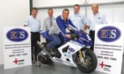 Motorcyclist Peter Baker has 14 championships under his belt and won the Nationals ProBike and Thunder Sport championships last year. He is pictured (centre) with EIS managing director Steve Neeves (right) and director Andy Spooner.