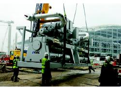 One of four 6.6 MW ammonia chillers arrives at Heathrow Airport’s Terminal 5 project. They will provide chilled water for the air-conditioning system.
